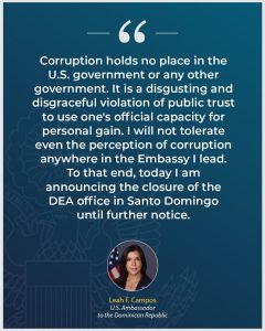 U.S. Ambassador orders indefinite closure of DEA office in Dominican Republic
