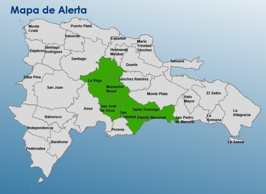Santo Domingo.- The Emergency Operations Center (COE) expanded its green alert to five provinces and the National District due to a trough affecting weather conditions across the country.