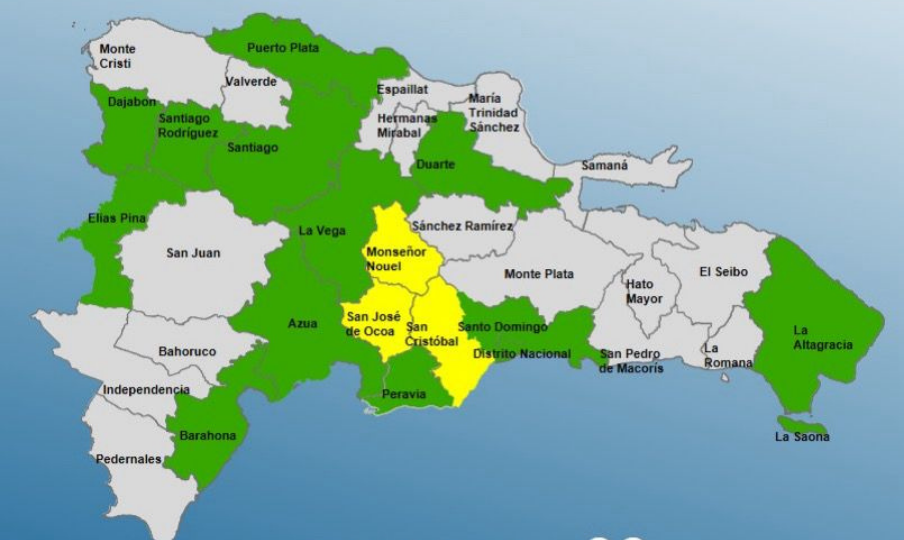 Provinces under yellow alert include Monseñor Nouel, San José de Ocoa, and San Cristóbal. Meanwhile, green alerts are in effect for areas such as Santo Domingo, Santiago, Puerto Plata, La Vega, La Altagracia, and Duarte, among others.